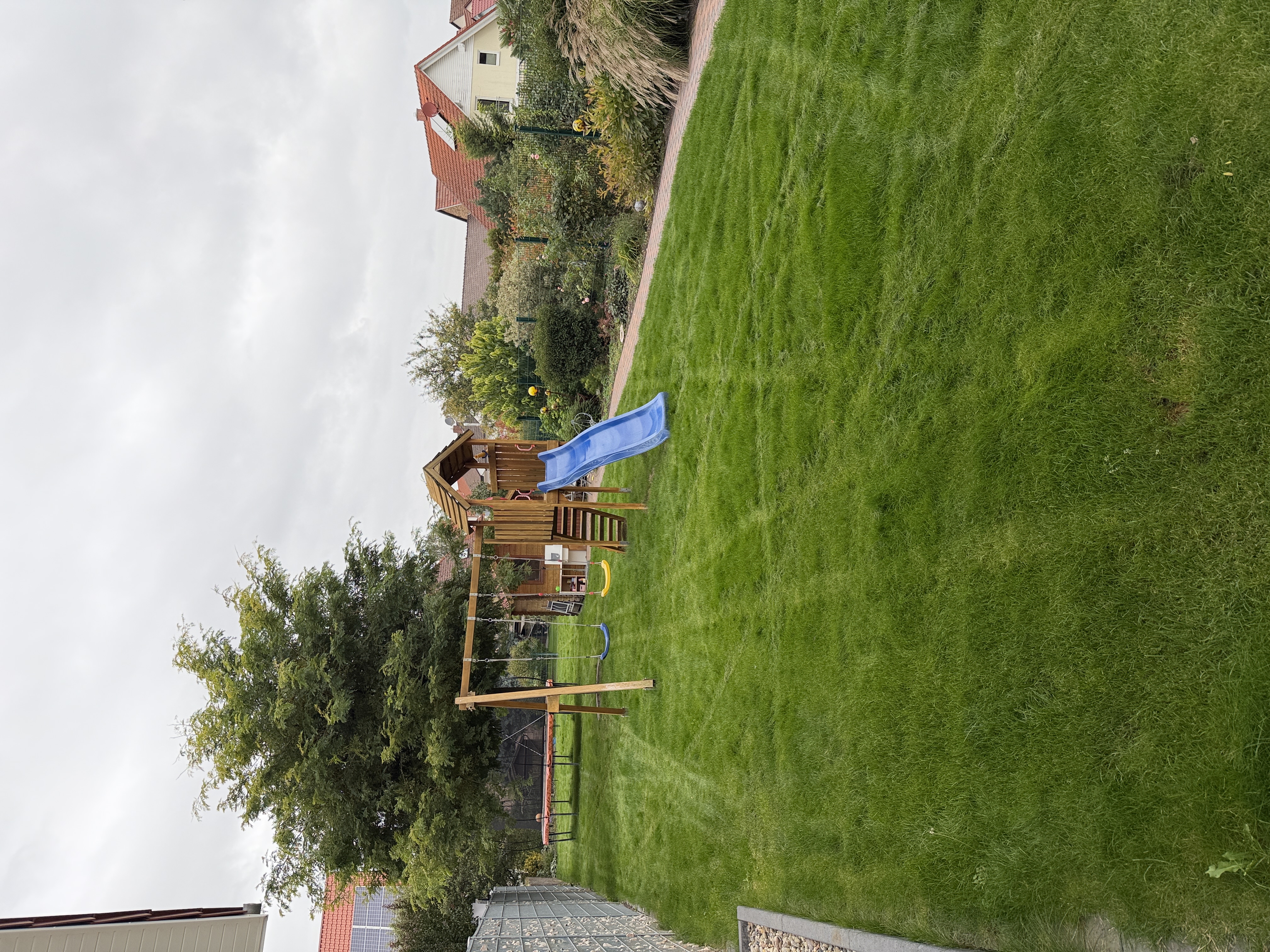 400 qm Rasen, 2 Kinder, 2 Hunde und 7 Nichten und Neffen.