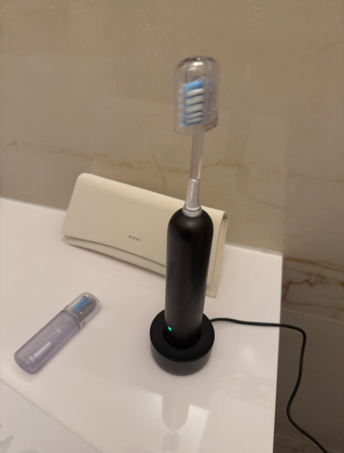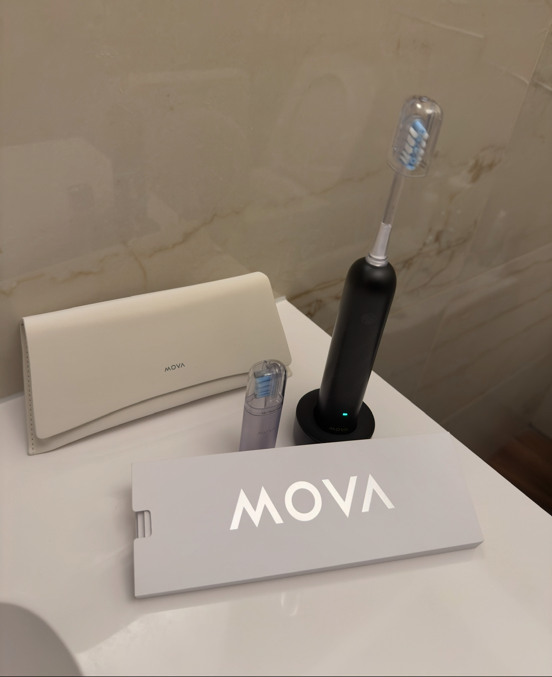Dopo alcuni giorni di utilizzo, posso dire che il MovaFresh Pro è uno spazzolino elettrico davvero eccellente. La potenza delle vibrazioni assicura una pulizia profonda e accurata, lasciando i denti lisci e la bocca fresca a lungo. È comodo da impugnare, dal design elegante e moderno, e la base di ricarica magnetica è pratica e veloce: basta appoggiare lo spazzolino per ricaricarlo senza complicazioni.