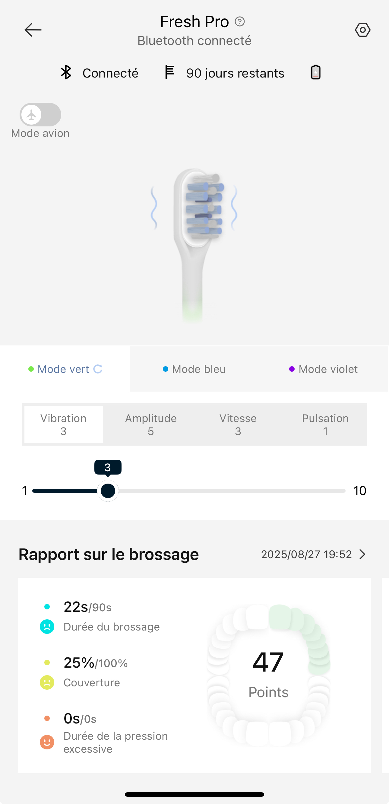 J’utilise la Mova Fresh Pro depuis quelques jours et j’en suis satisfait. Le brossage est efficace, mes dents paraissent plus propres et l’application aide à mieux suivre ma routine. L’autonomie a l’air très correcte et le design est plutôt élégant. L’étui de voyage est un vrai plus. Une excellente brosse à dents, pratique et agréable à utiliser au quotidien.