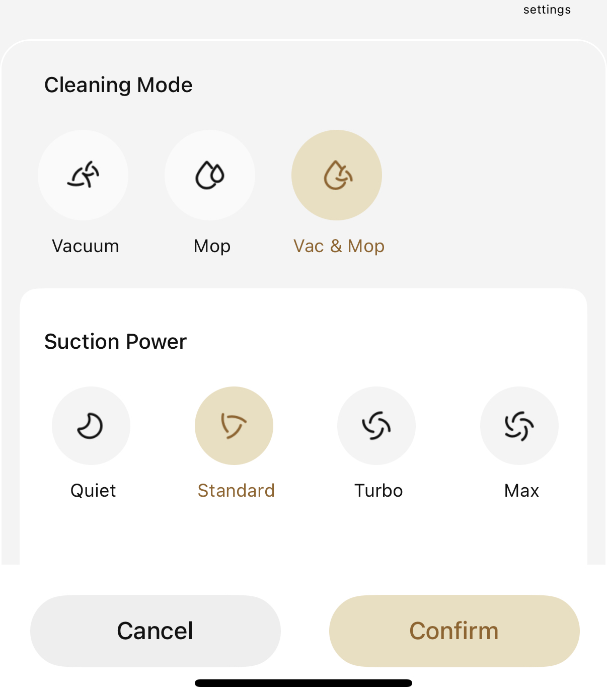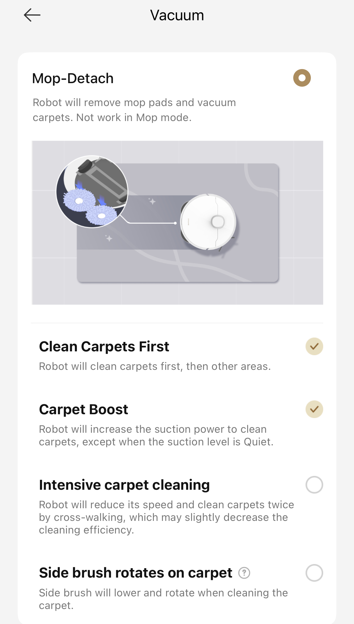 V50 ultra. When I try to set a scheduled custom cleaning to vac & mop, the robot does not detach the mop and vacuum first. It mops first and leaves the mop pads attached then vacuums. I have my settings to vacuum and mop-detach with carpets first. How can I get the robot to perform a scheduled cleaning where it detaches the mop pads and vacuums first then mops.