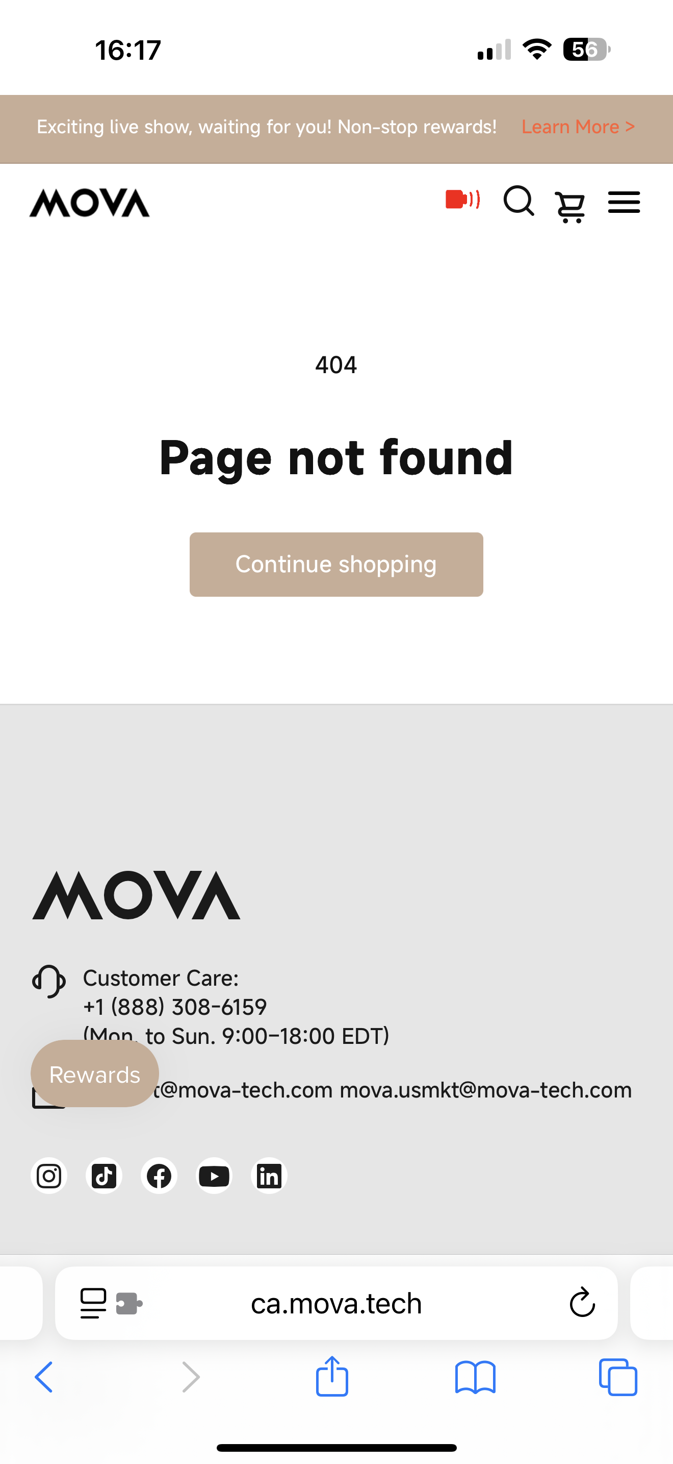 Hello, this may be a bug. We can see the products currently on sale on the MOVA Canada official website.